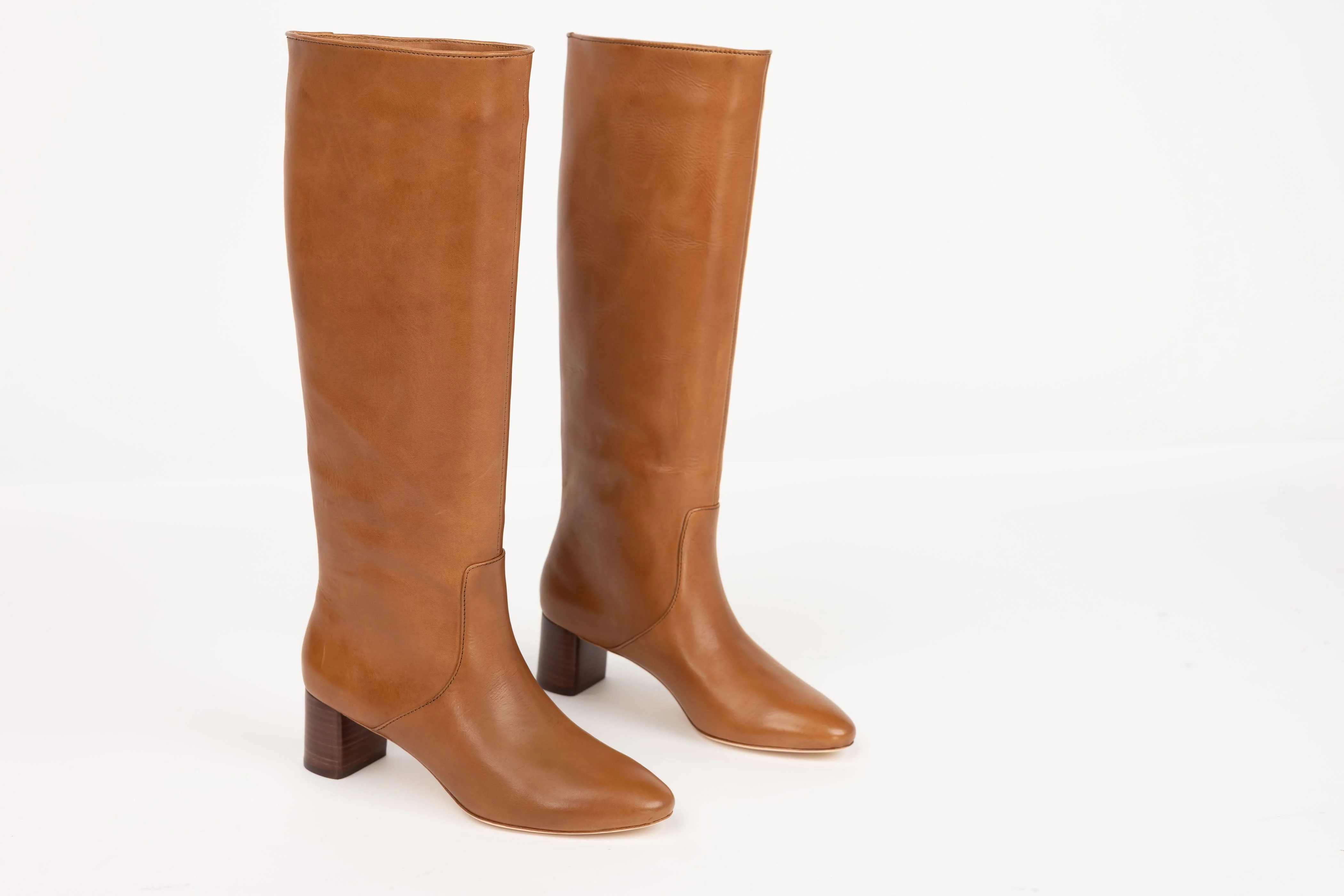 Experience both style and comfort with the Loeffler Randall Gia Tall Leather Boots in Safari. Made from premium vachetta leather, these safari tan boots feature a padded footbed with a gold stamped logo and a 2 inch heel. The almond toe and easy pull-on design make these boots a must-have for any fashion-forward wardrobe.