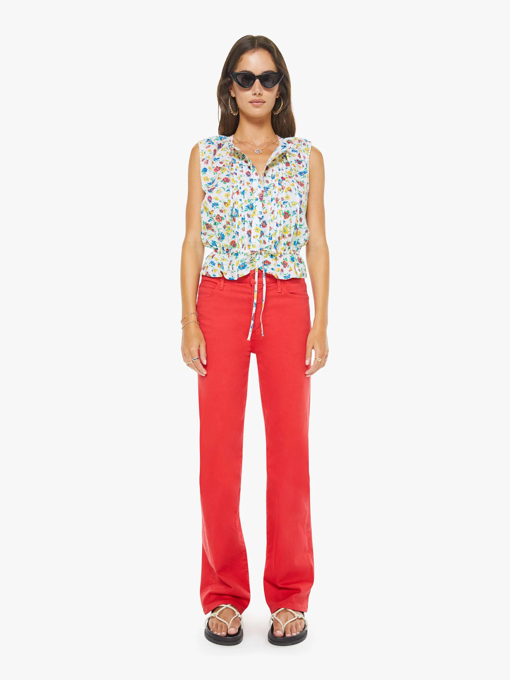 Elevate your warm-weather wardrobe with this effortlessly chic sleeveless blouse. Crafted from breathable 100% cotton, it features a flattering V-neck with button detailing, an adjustable drawstring waist for a personalized fit, and a cropped silhouette that pairs perfectly with high-waisted bottoms. The vibrant Rose Bowl floral print adds a pop of color and personality to any outfit, making it an ideal choice for casual days or dressed-up occasions. Versatile, comfortable, and undeniably stylish.