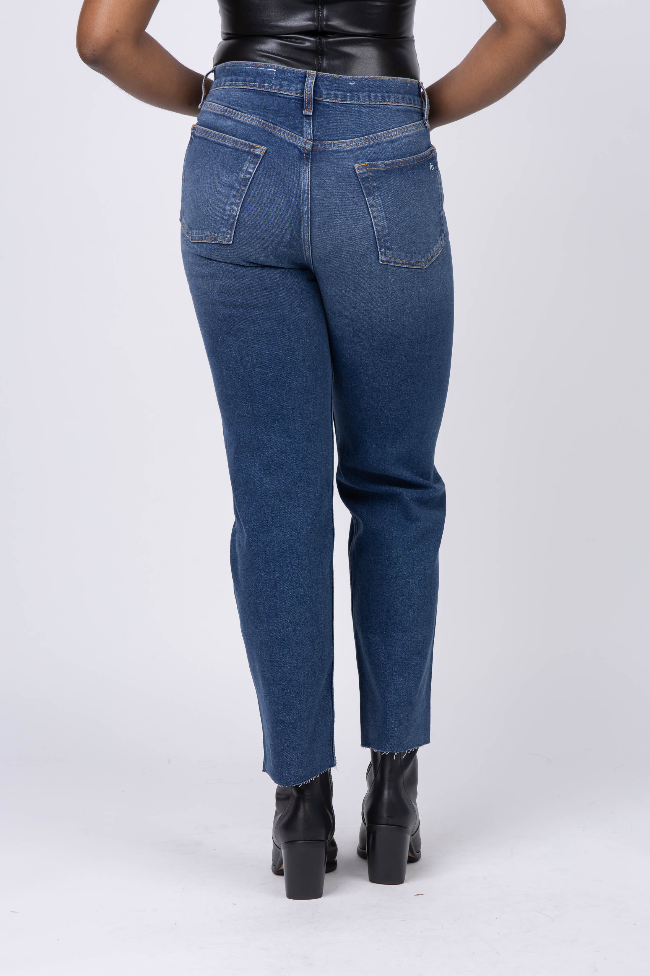 The Harlow. The perfect straight-leg jean. Mid-rise, fitted through the thigh and super straight. Crafted in Vintage Stretch-the look of vintage with a touch of stretch. In Marine, a dark indigo that's complete with a step hem.