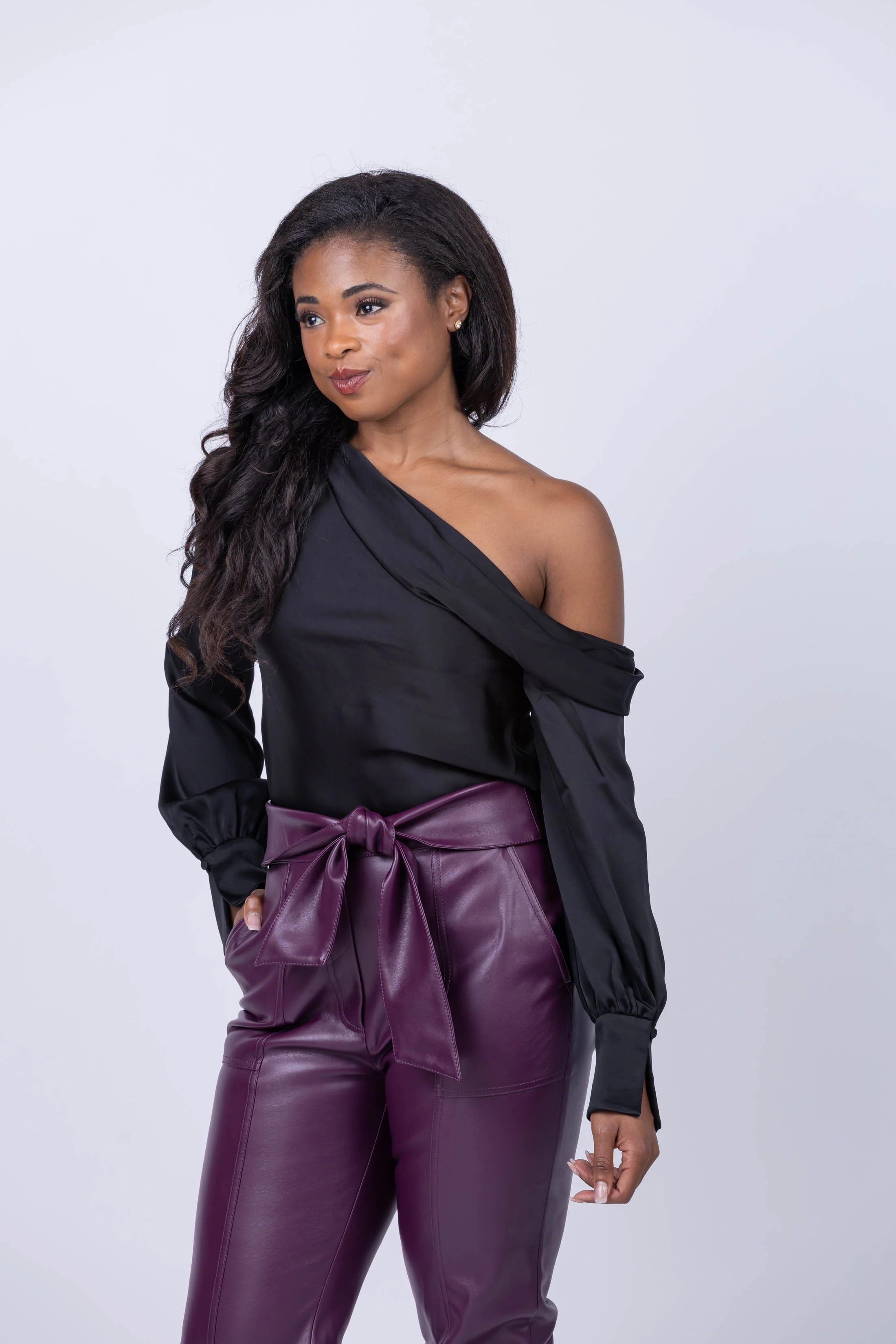 Make a statement in the Alice Top. With one-shoulder styling, balloon sleeve, and buttoned cuffs, this top is perfect for any special occasion. Crafted from a luxe satin fabric with a blend of 89% acetate and 11% poly, the Alice Top will make you look and feel amazing. Dry clean only. Make a strong impression with the Alice Top.