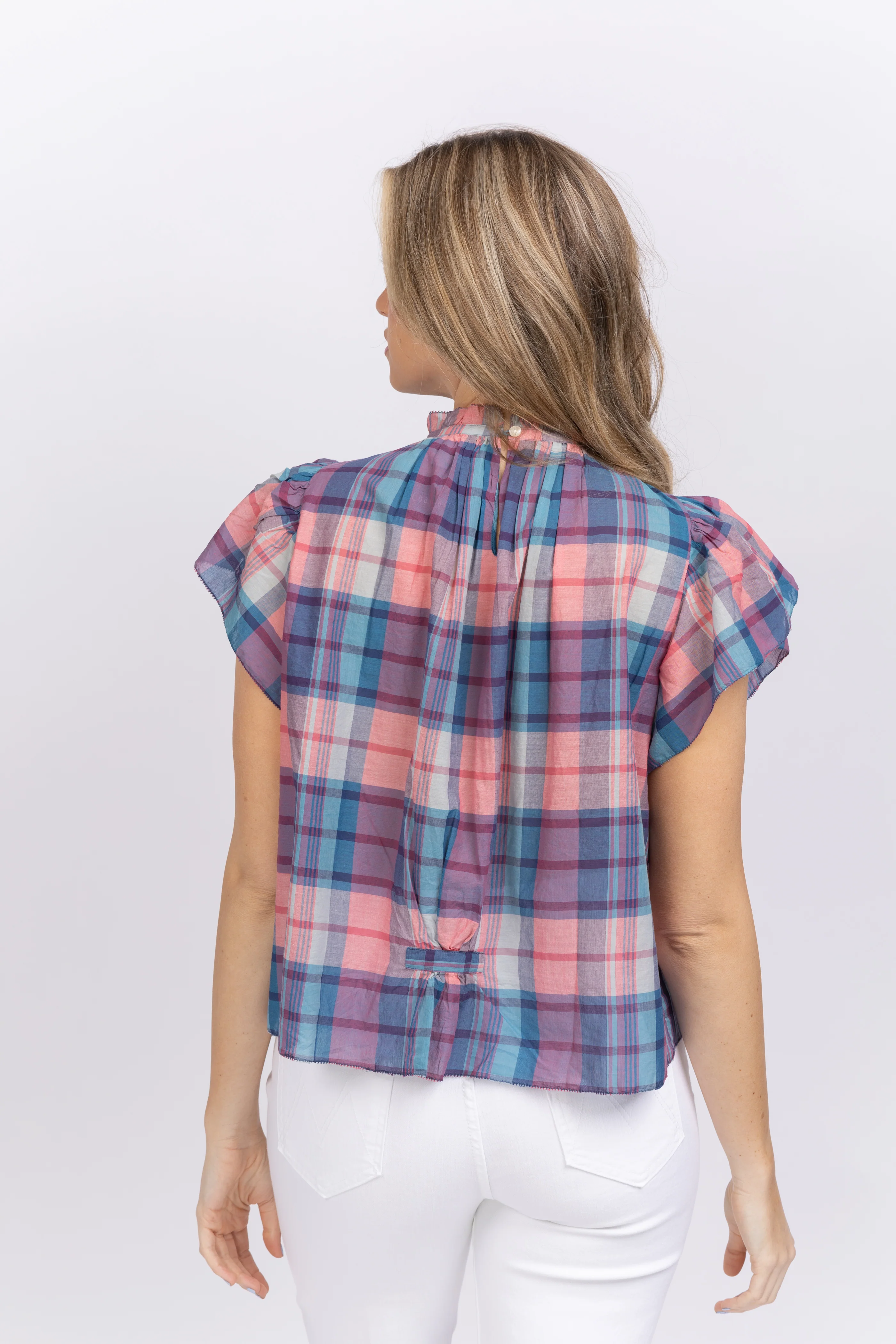 -70%Trovata Carla High Neck Top Sorbetto Plaid—