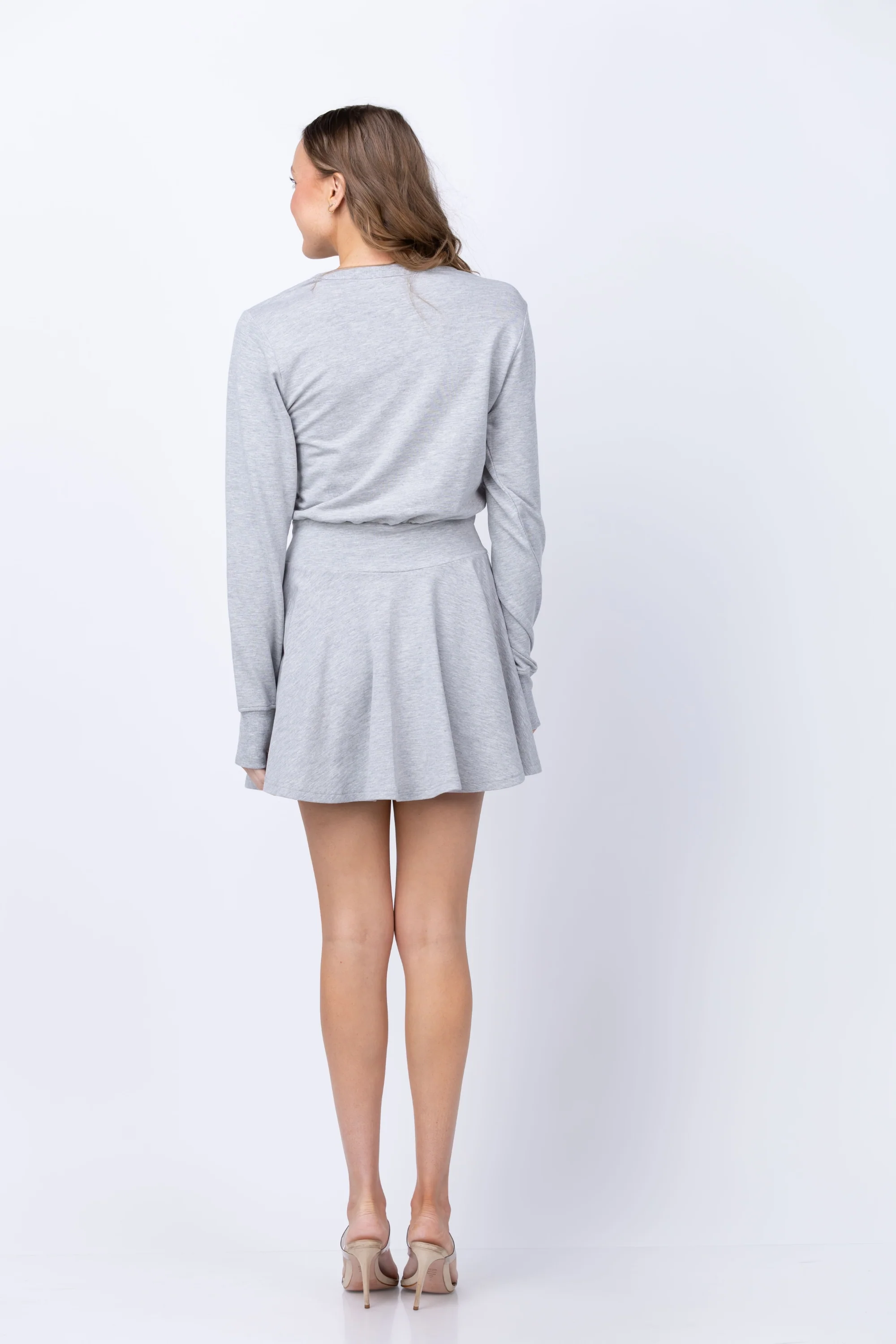 Discover effortless sophistication with the We Are Sundays Frida Dress in Heathered Grey. This best-selling style features our signature Lux Wash French Terry—a sumptuous fabric that feels as luxurious as it looks. The cinched waist sculpts a flattering, feminine silhouette that celebrates your natural curves, while the split neckline brings an understated, contemporary edge. Practical thumbholes keep sleeves in place and add a polished finishing touch. Whether you're running errands or meeting friends, this dress delivers the perfect blend of comfort, style, and wearability that keeps customers coming back.